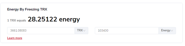 103430 = 11301 + 92129. - 저정도 에너지를 동결로 얻으려면 최소 TRX 3662가 필요함.