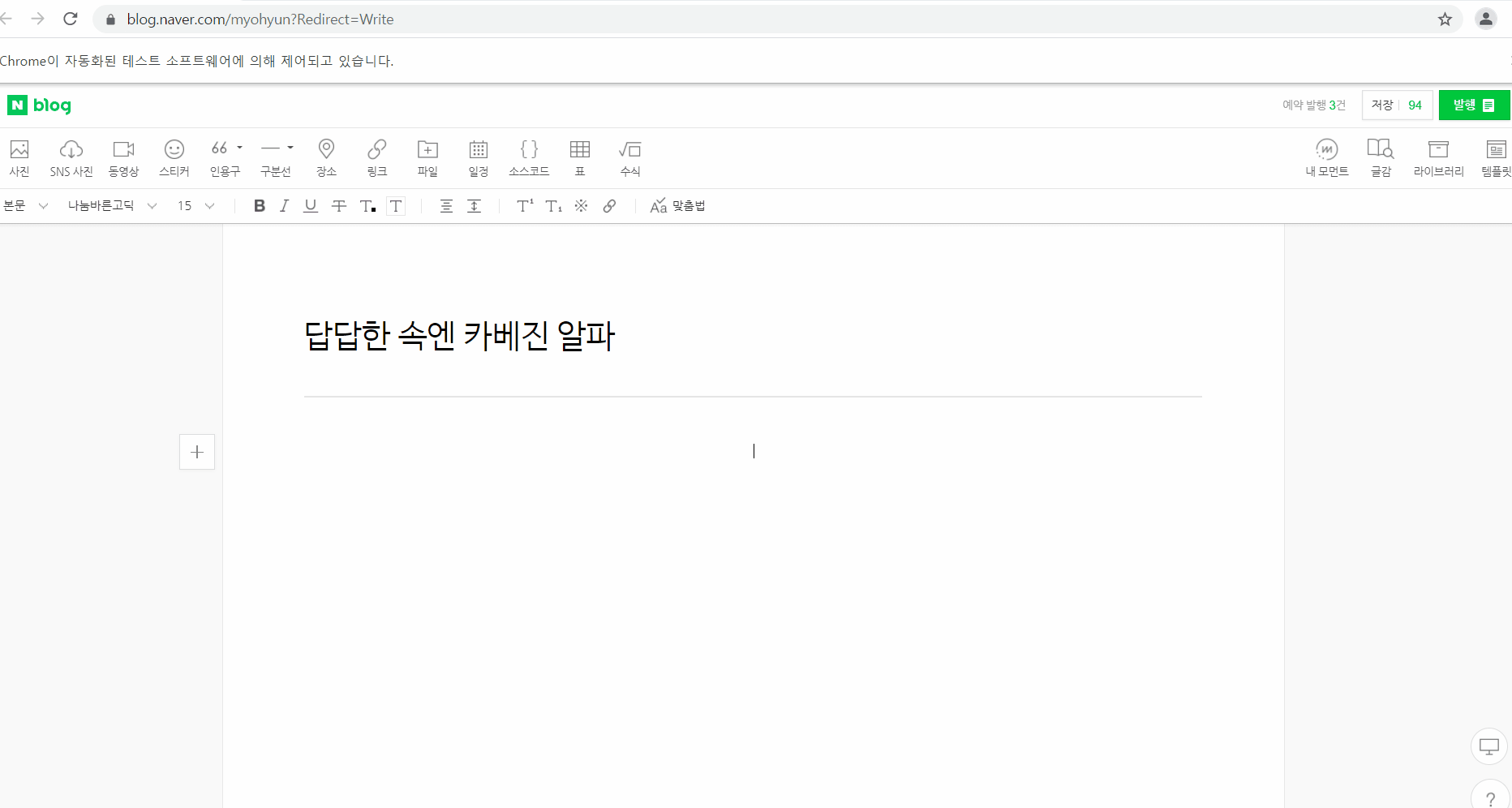 어떻게 하다보니 셀레니움으로 네이버블로그에 매크로 작업을 성공적으로 해냈다. 1차 테스트도 마쳤음.