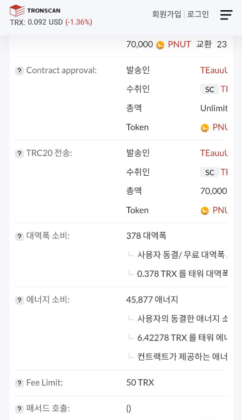 챗방에서 누군가 트론-피넛 스왑 관련 질문을 했는데 답변하다보니 피넛-트론스왑에는 얼마의 컨트랙 수수료가 들까 궁금해졌다.