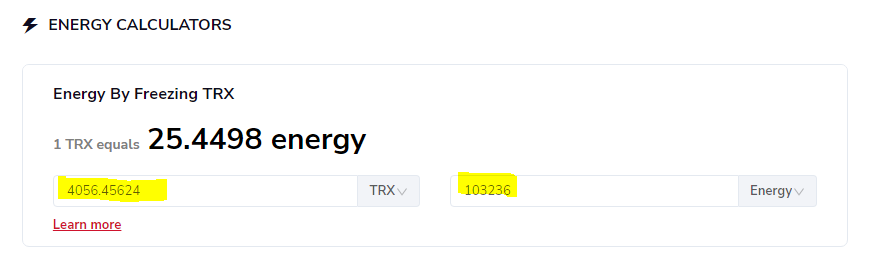 가장 에너지가 많이 드는 컨트랙트를 기준으로, 103,236 에너지를 얻기 위해 프리징해야 하는 트론양은 계산기를 사용해보면, 약 4,100개가 필요 하다.