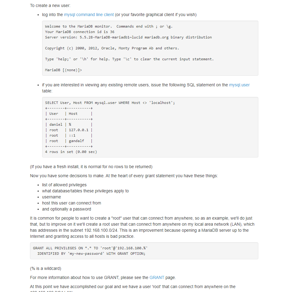 - 엑세스 권한 관련 1 : https://mariadb.com/kb/en/configuring-mariadb-for-remote-client-access/