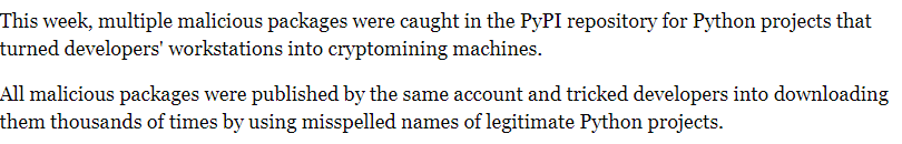1-1. Sonatype Catches New PyPI Cryptomining Malware
