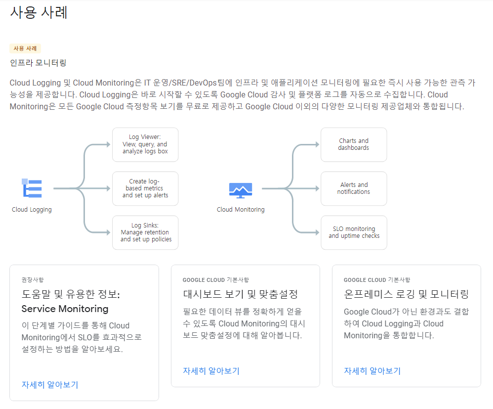 로깅은 데이터를 쌓는 것에 좀 더 중점을 두는 것 같고, 모니터링은 말 그대로 모니터링에 더 중점을 두는 듯 하다. alert 기능이나 실시간 데이터 대시보드 등도 제공하고.