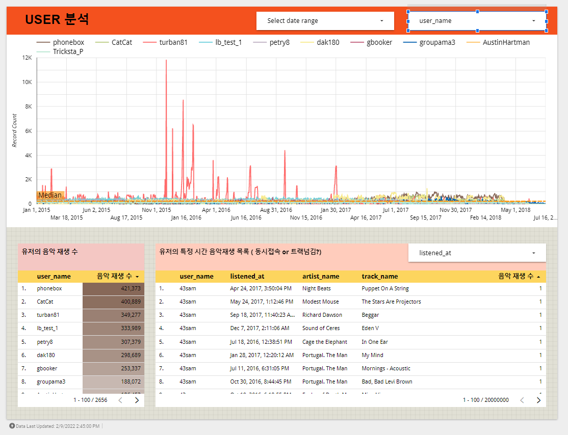 밑은 빅쿼리에서 추출한 데이터를 데이터 스튜디오로 연결해 이것저것 탐색했던 내용의 일부이다.